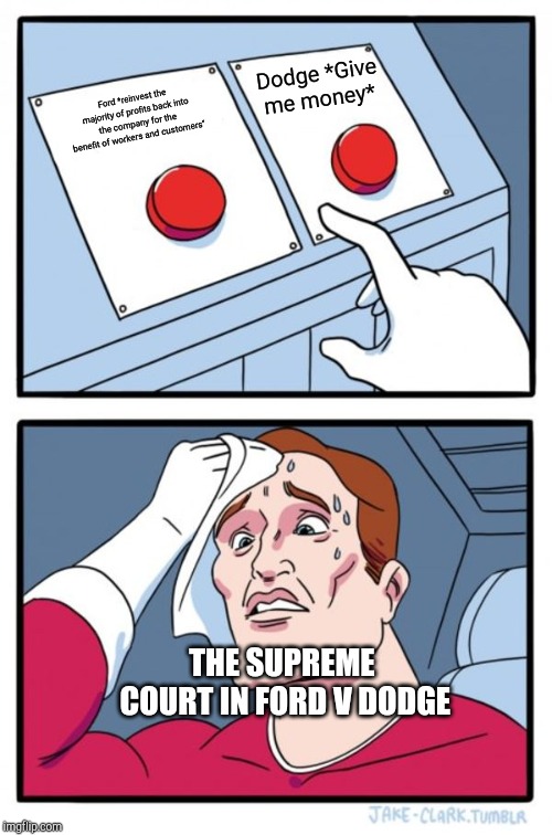 Spoiler: they sided with Dodge making it technically illegal to run a publicly traded company for any reason besides the profit of the shareholders, but upheld that Ford had a leniancy in how best to achieve that profit le maîtreJune 2, 2019meme Post navigation PreviousNext http://bit.ly/2WjGO6h via /r/HistoryMemes http://bit.ly/2IcqRoP Share this: Share on X (Opens in new window) X Share on Facebook (Opens in new window) Facebook Like Loading... Related
